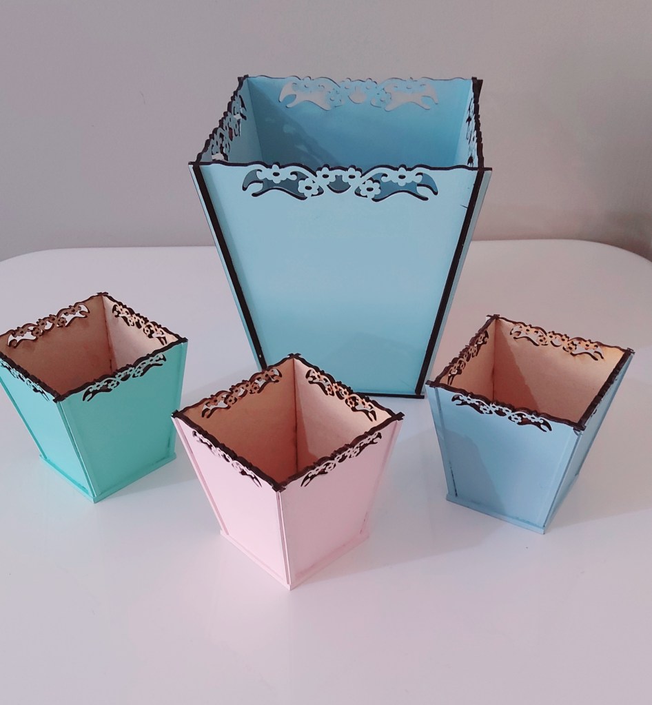920- Set of sweet boxes. Painted in soft colours. Set $35
