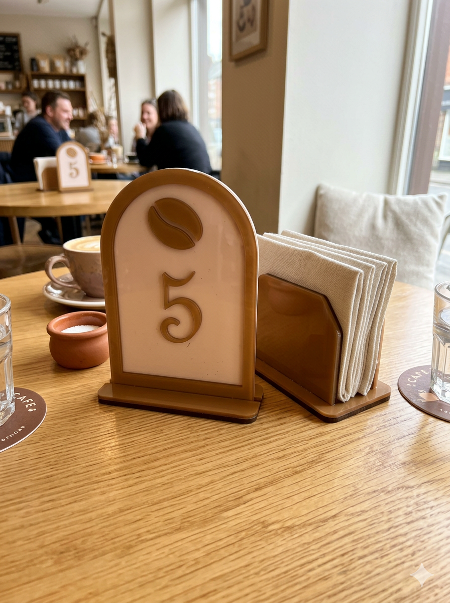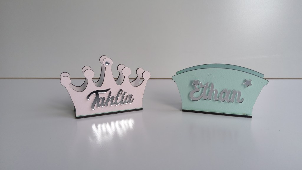 926- Personalised napkin holder with names in mirror-finish acrylic. $15 each