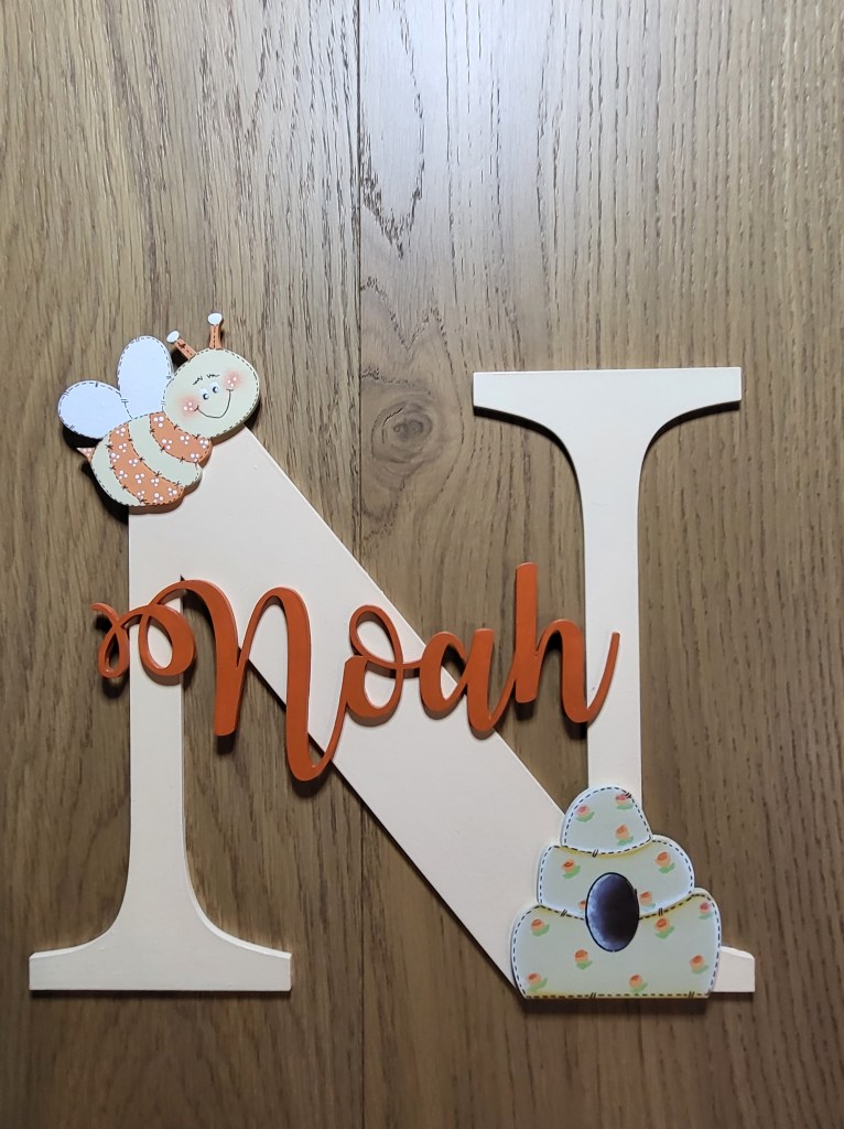 313- Hand-painted wooden letter. Personalised. 24cm x 23cm $45