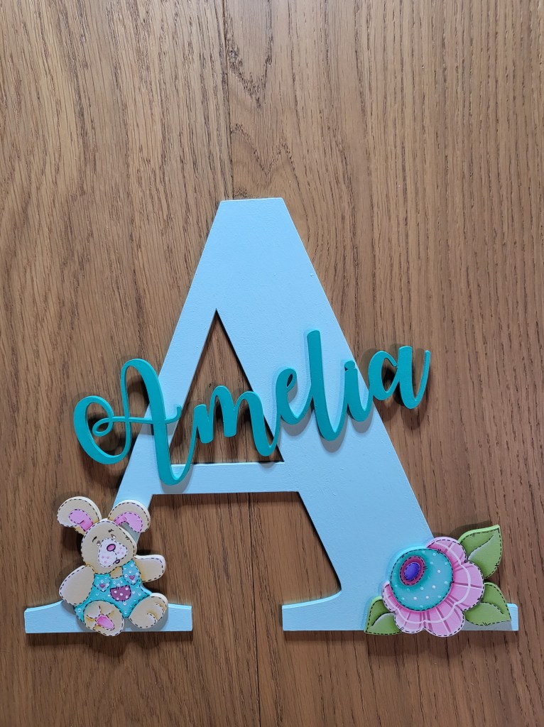 310- Hand-painted wooden letter. Personalised. 27cm x 23cm $45